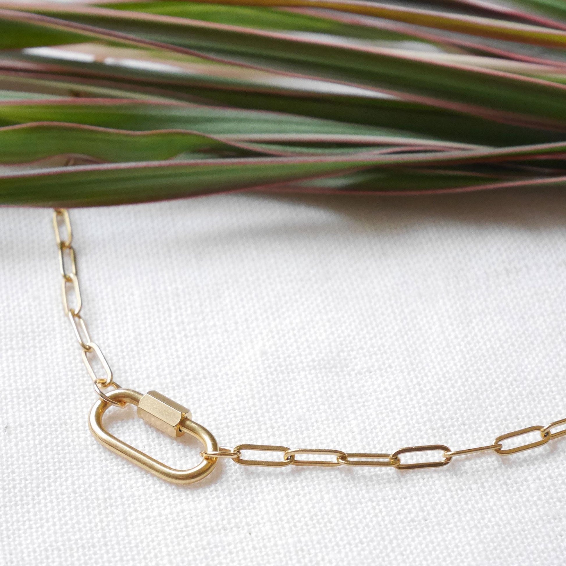 Dainty carabiner paperclip chain necklace | Small mini screw lock necklace with gold stainless steel chain | Add your own charms choker gift