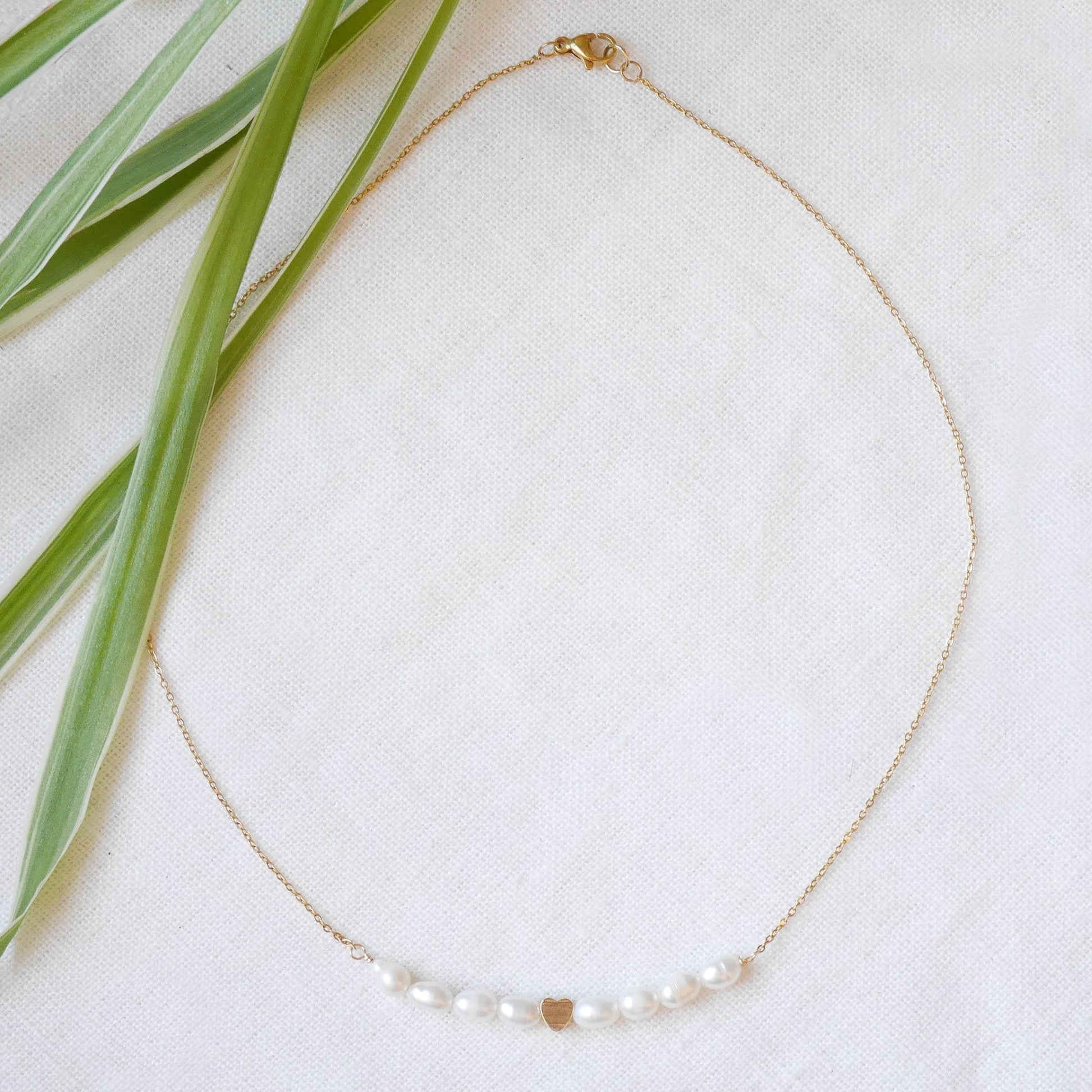 Dainty heart necklace with freshwater pearls | Minimalist delicate chain necklace | Gold heart jewelry | Anniversary gift for girlfriend