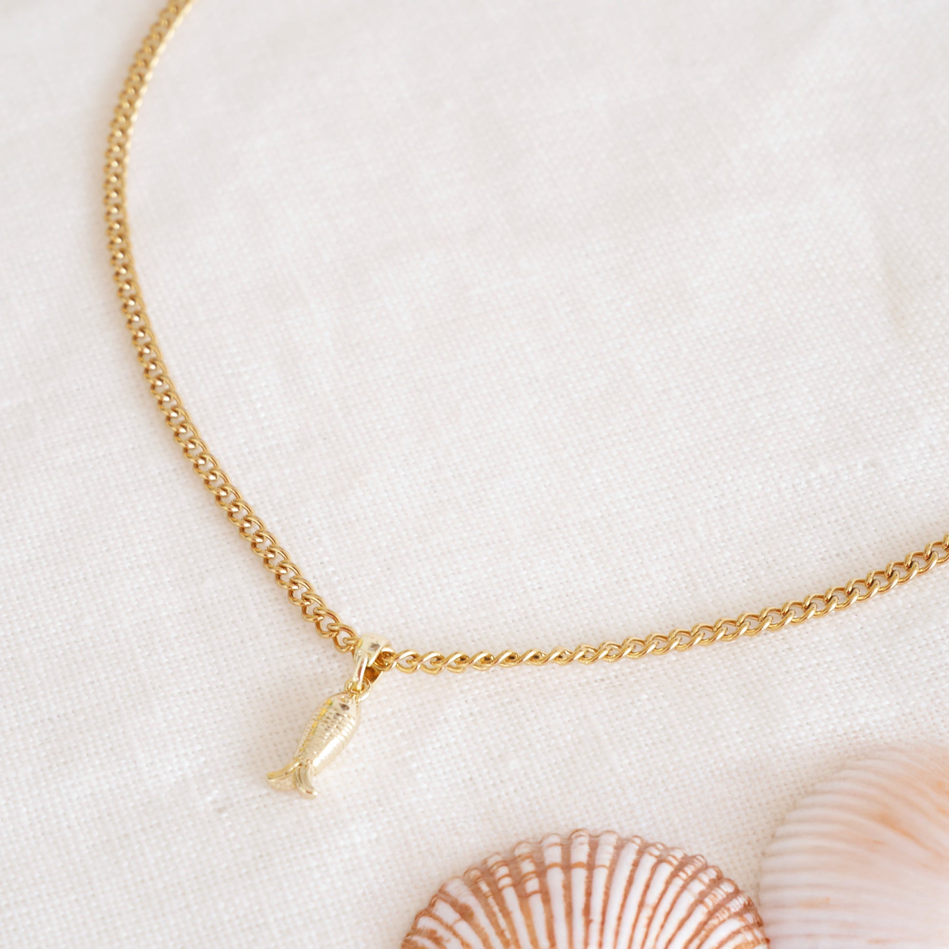 Fish necklace - Pisces gold charm chain, sardine bass jewelry gift for her