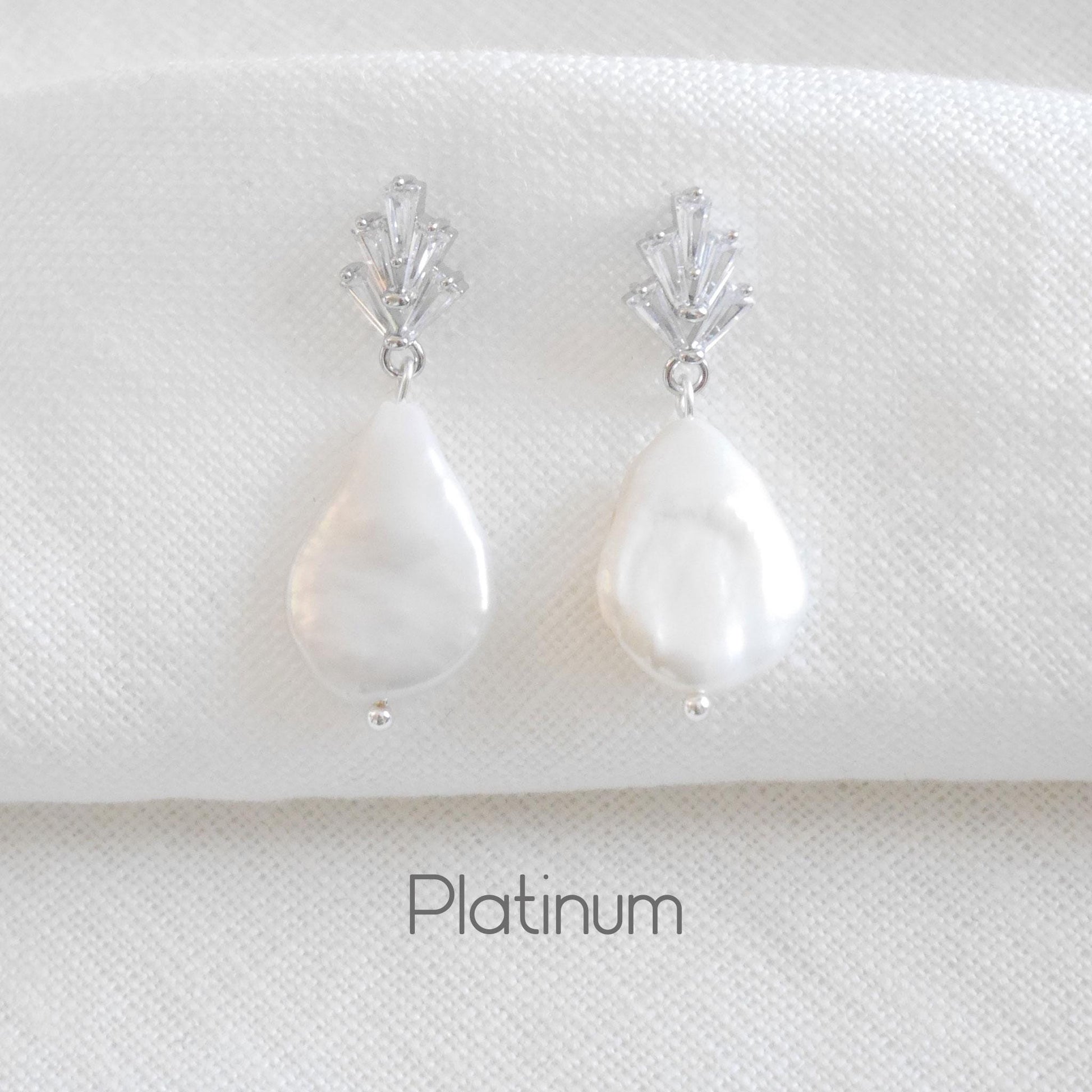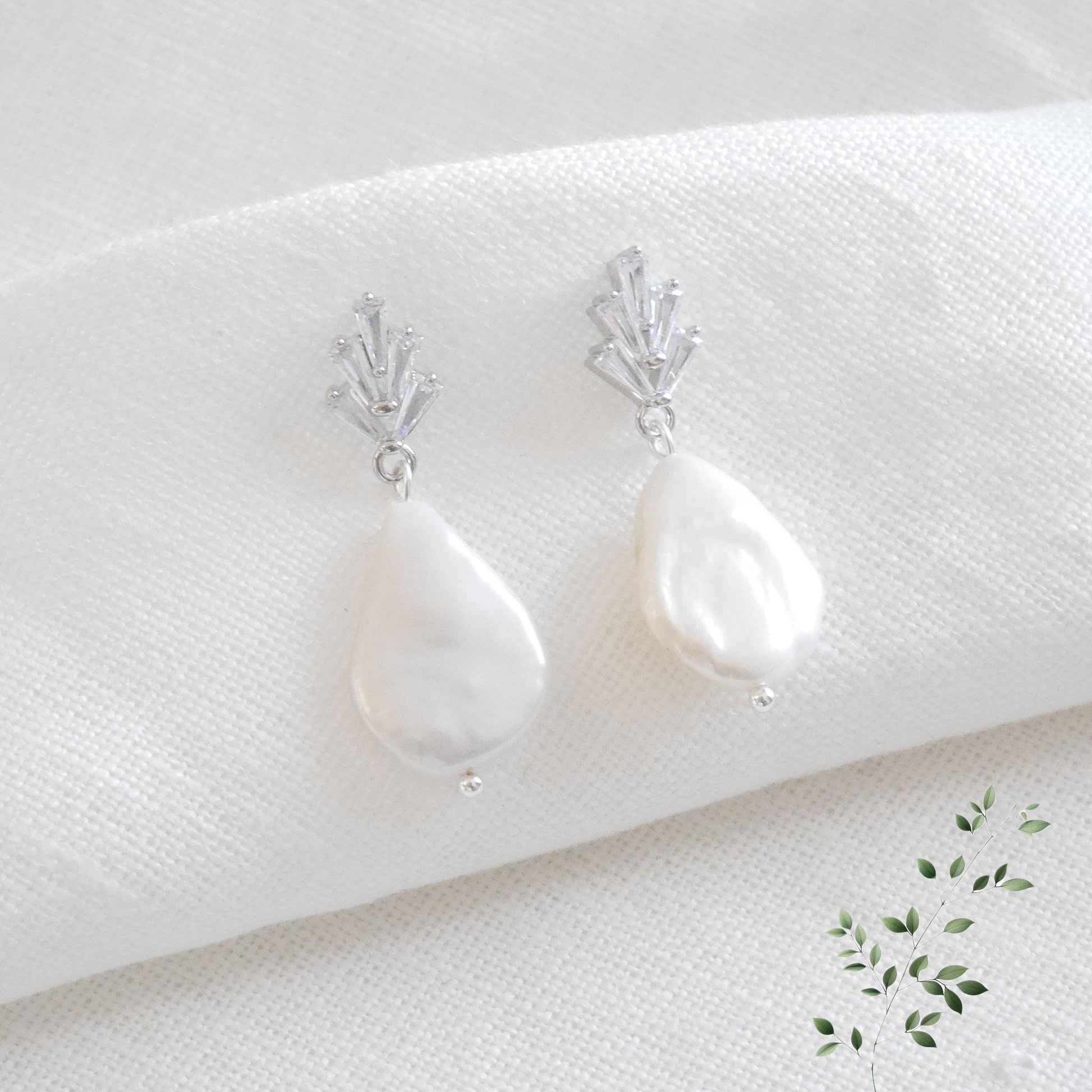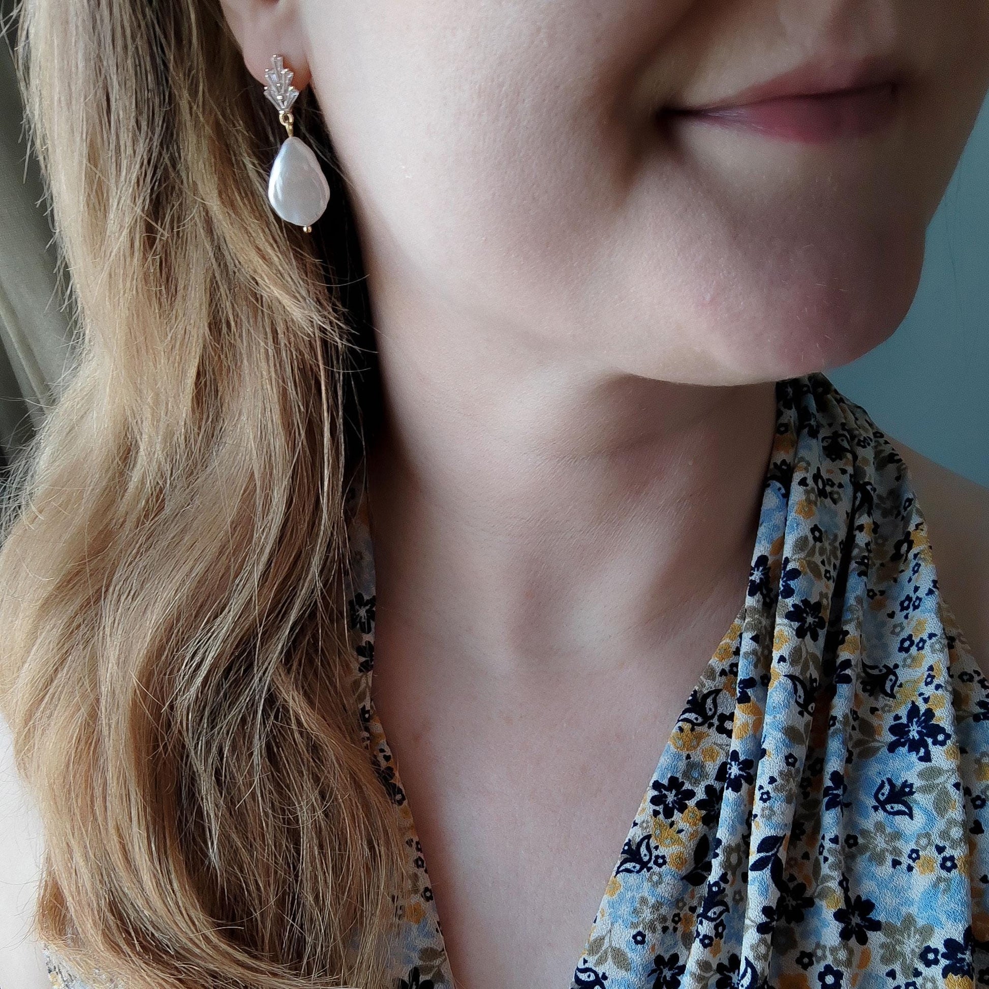Freshwater pearl art deco earrings | Elegant big pearl earrings | Vintage style bridal pearl drop earrings | 1920s wedding earrings for her