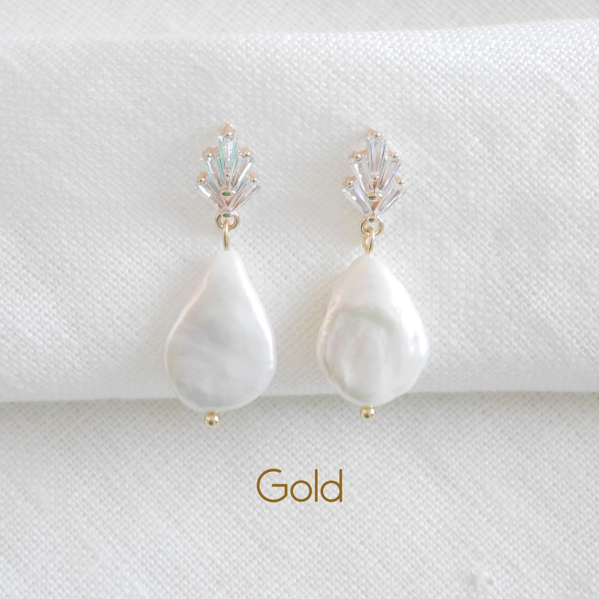 Freshwater pearl art deco earrings are elegant and feminine. In these vintage style earrings, I have paired zircon art deco fan designs with beautiful teardrop shape freshwater pearls. The size and shape of the pearls vary slightly.