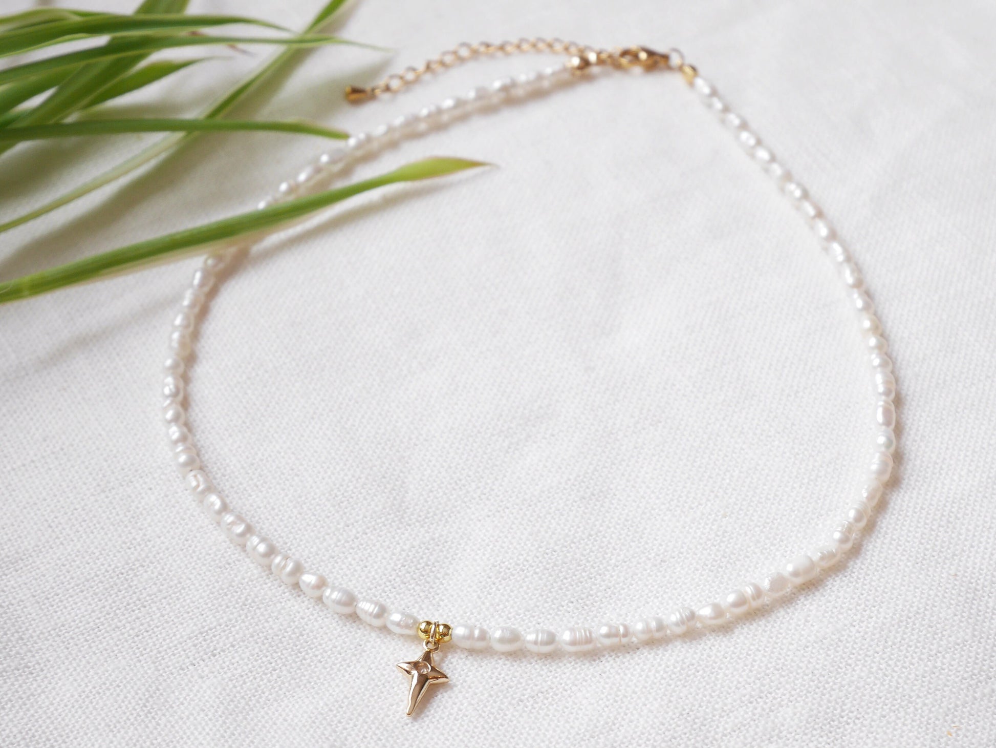 Freshwater pearl necklace | North star pendant choker | Small real pearls with star charm | Dainty light-weight cute gold zircon jewelry