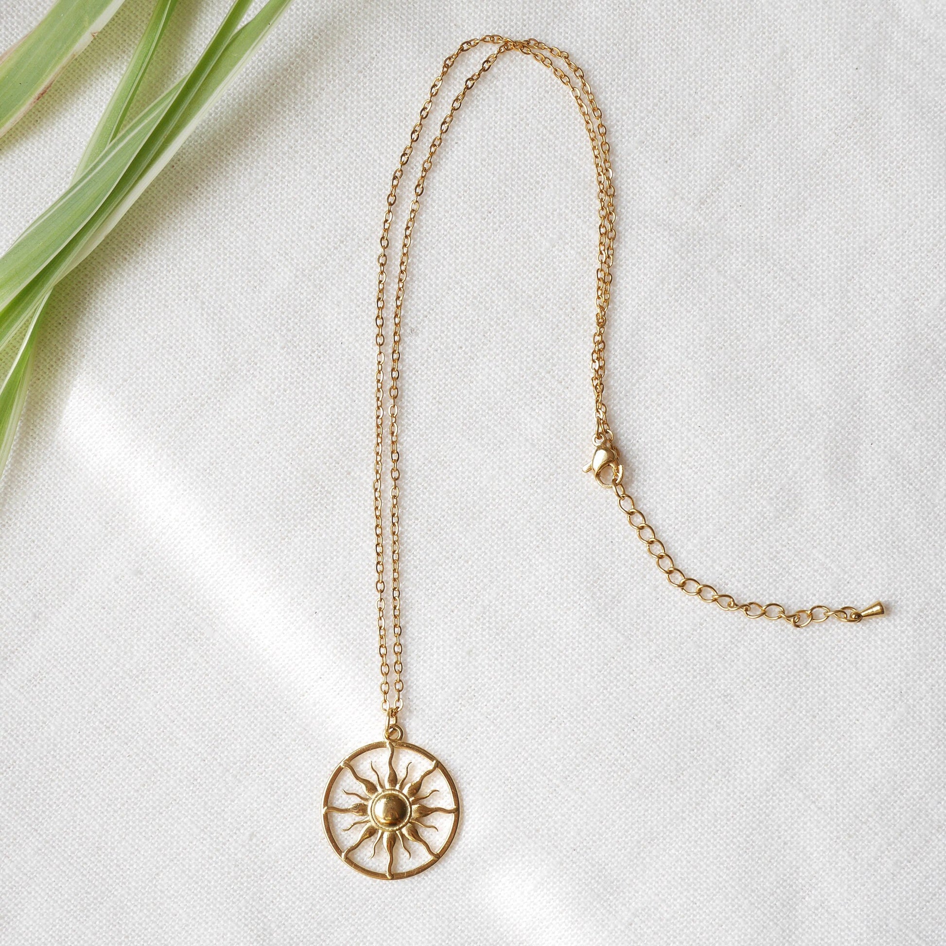 The gold sun necklace is such a versatile and cute minimalist necklace. In this sunshine charm necklace, I have paired a sun pendant with a stainless steel chain.