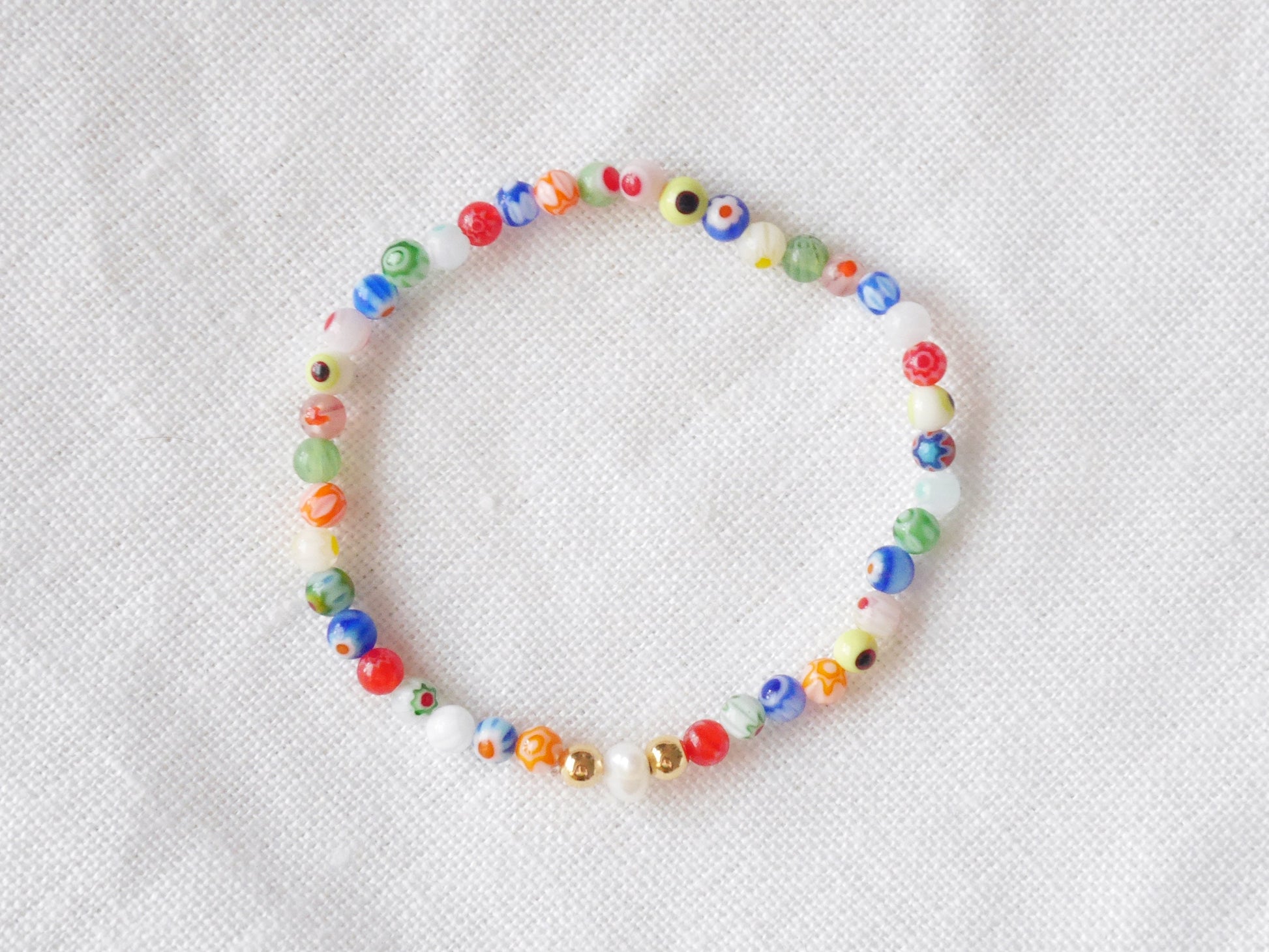 Millefiori pearl bracelet | Colorful stretch bracelet with small glass beads | Cute colorful bracelet | Comfortable beaded bracelet