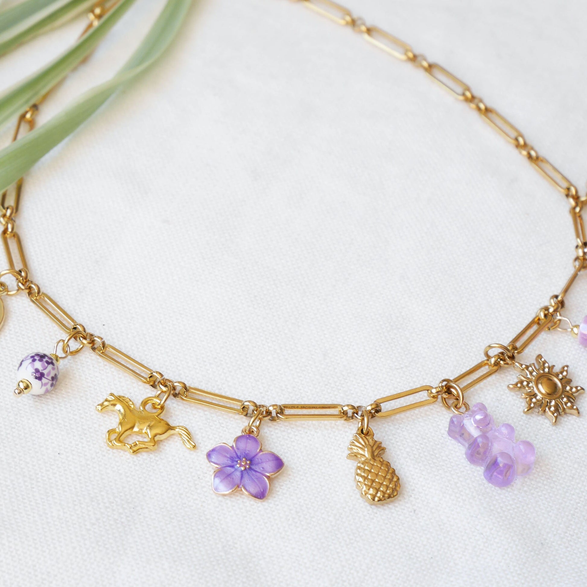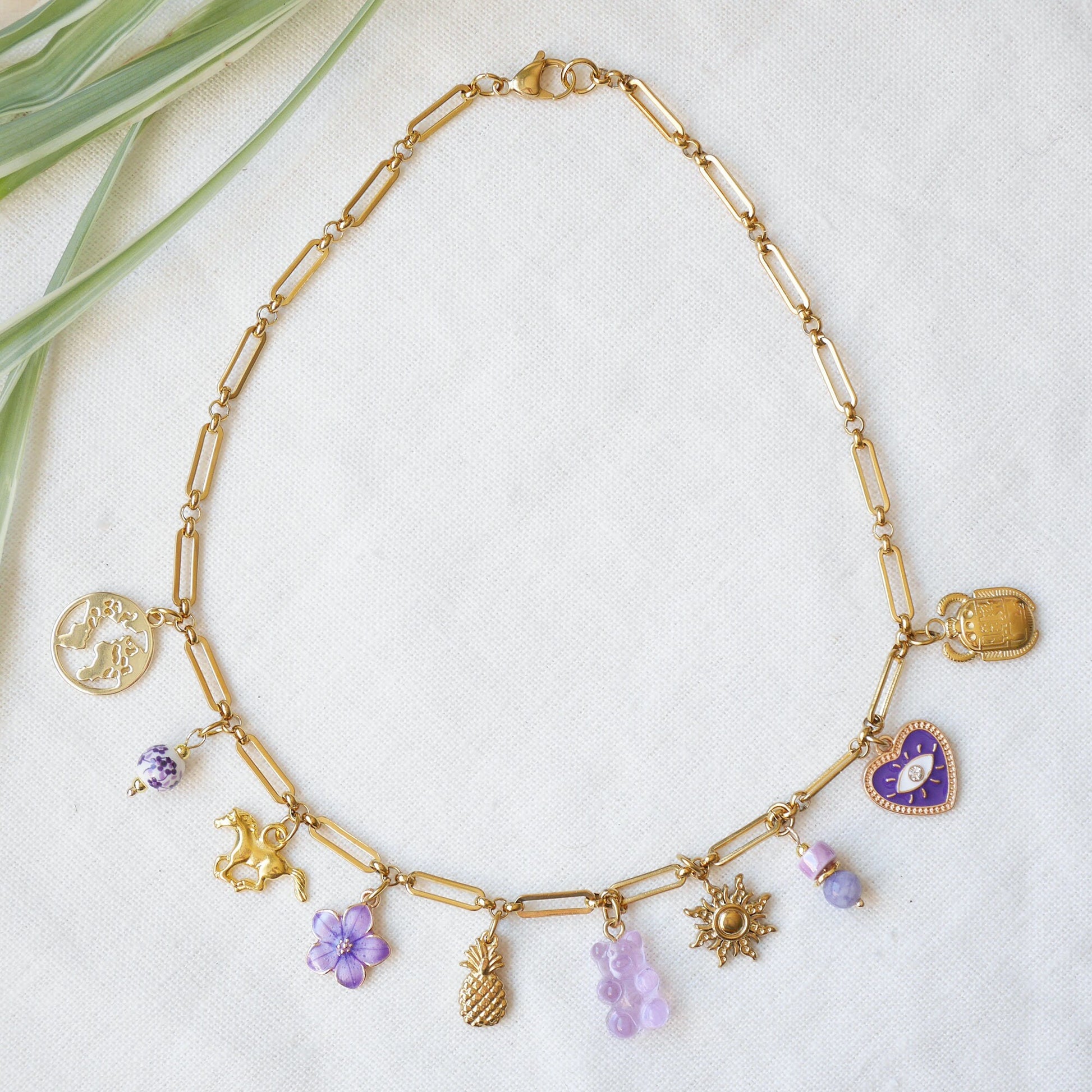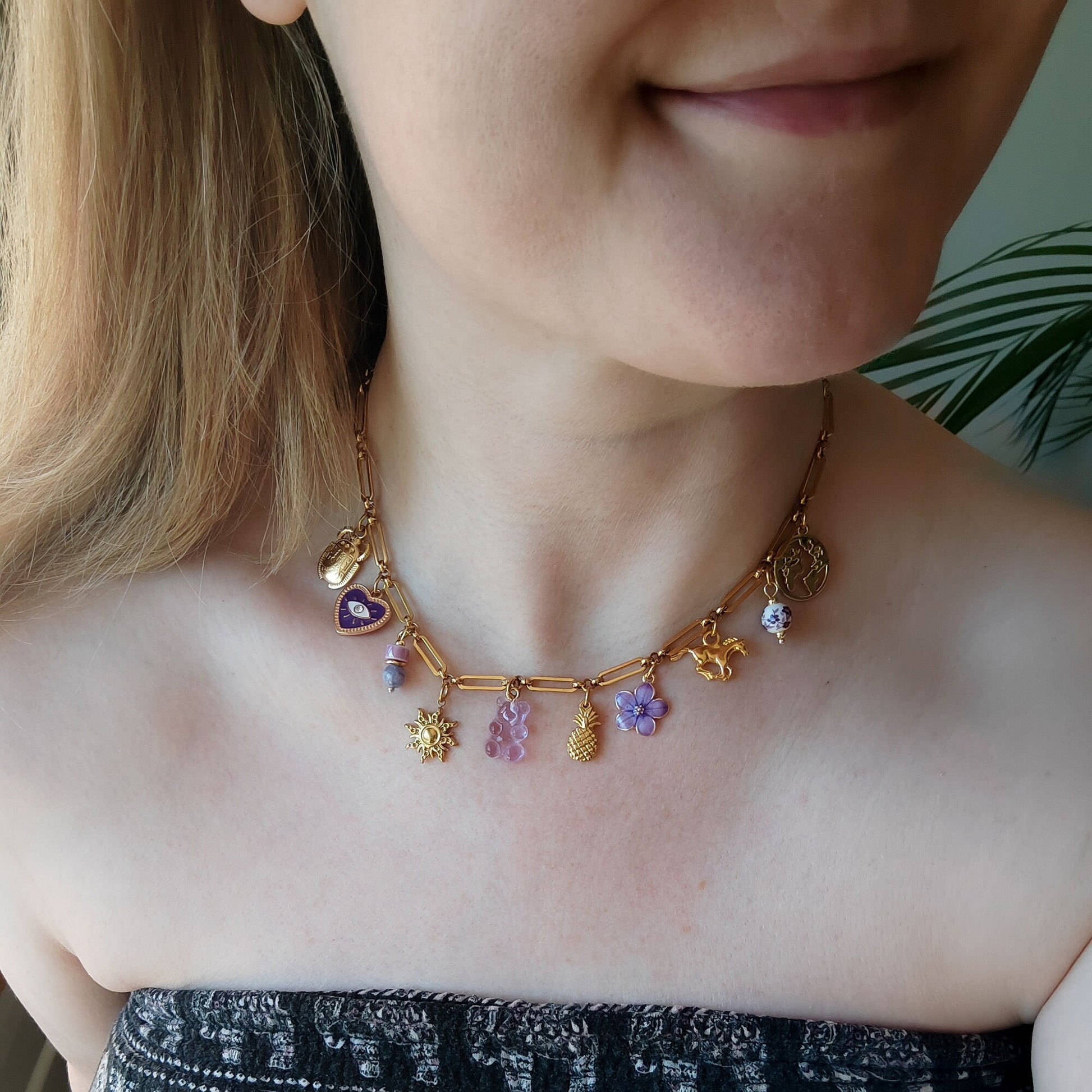 Paperclip charm necklace is such a beautiful summer necklace, with your choice of charms - huge selection of options! Gold stainless steel long paperclip chain.