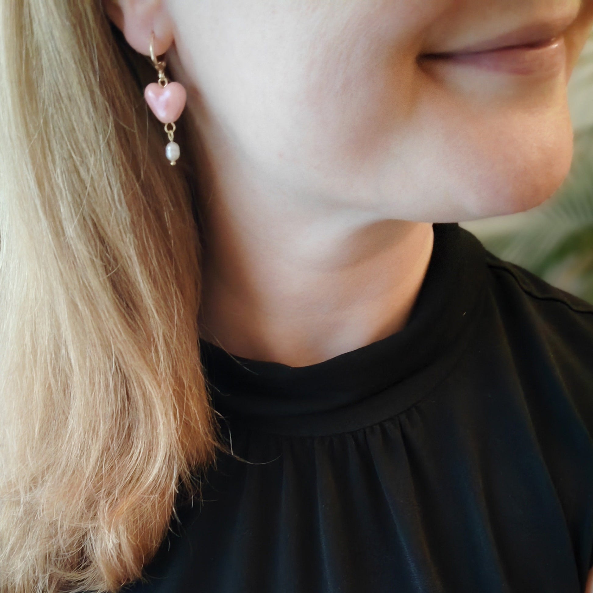 In these adorable earrings, I have paired two ceramic hearts with either round lever-back or French hook ear wires. You can also choose to have your earrings with small rice-shape freshwater pearls. Lovely gift idea for wife or girlfriend - or bridesmaids!
