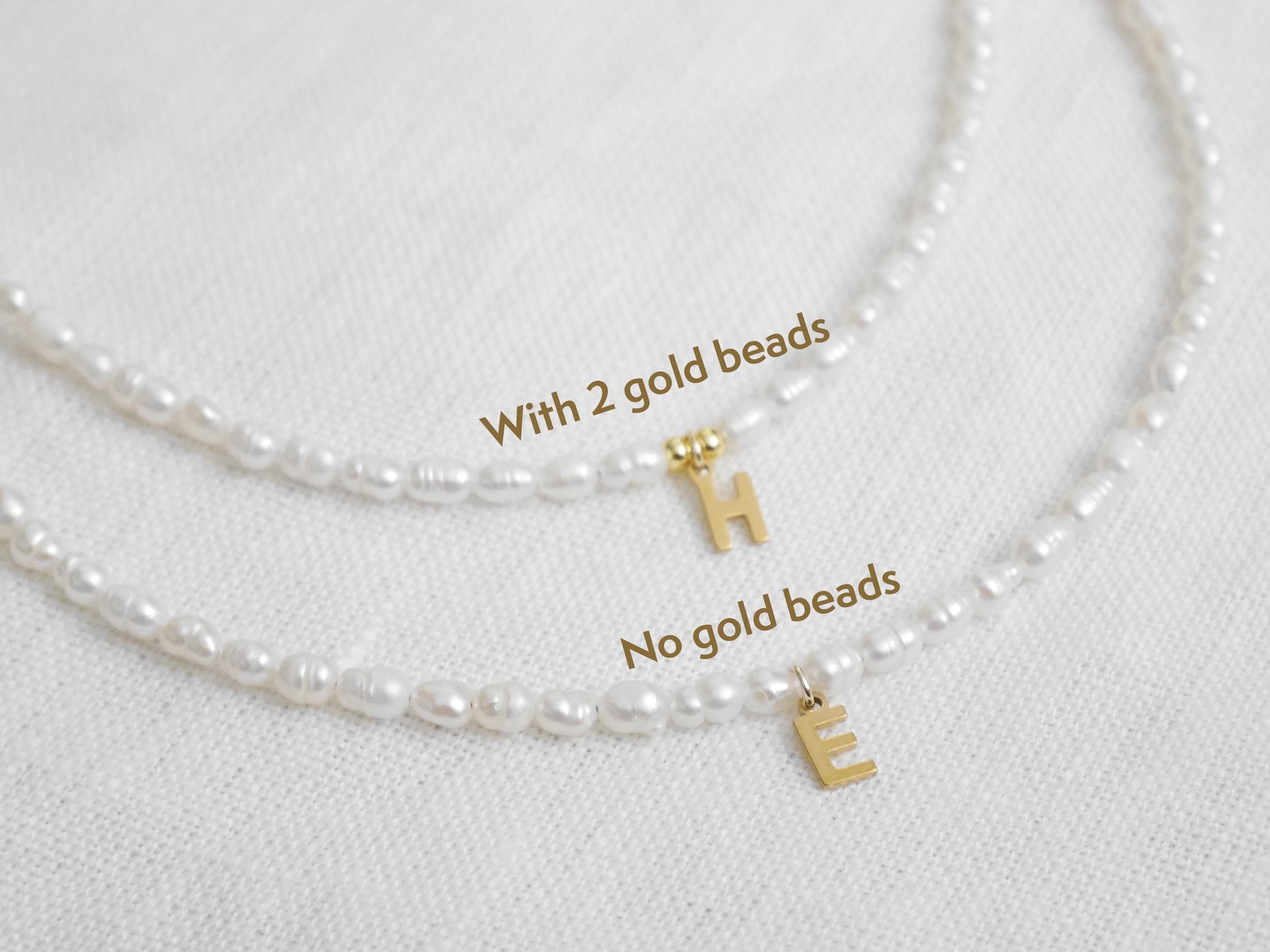 - without the gold-plated beads (with just the initial in the center, surrounded by freshwater pearls).