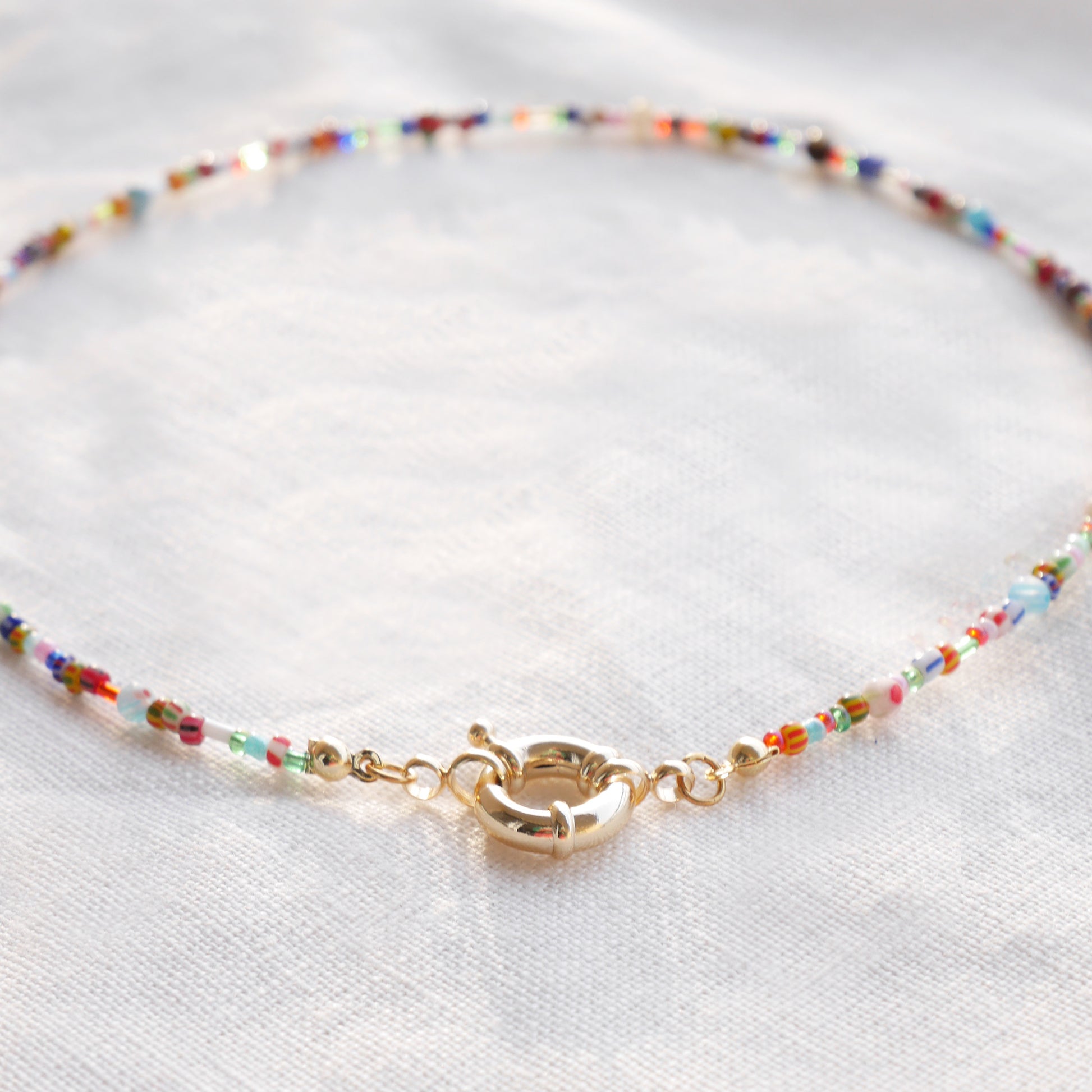 Tiny seed beads front clasp necklace is such a cute beaded necklace — colorful, dainty and comfortable.